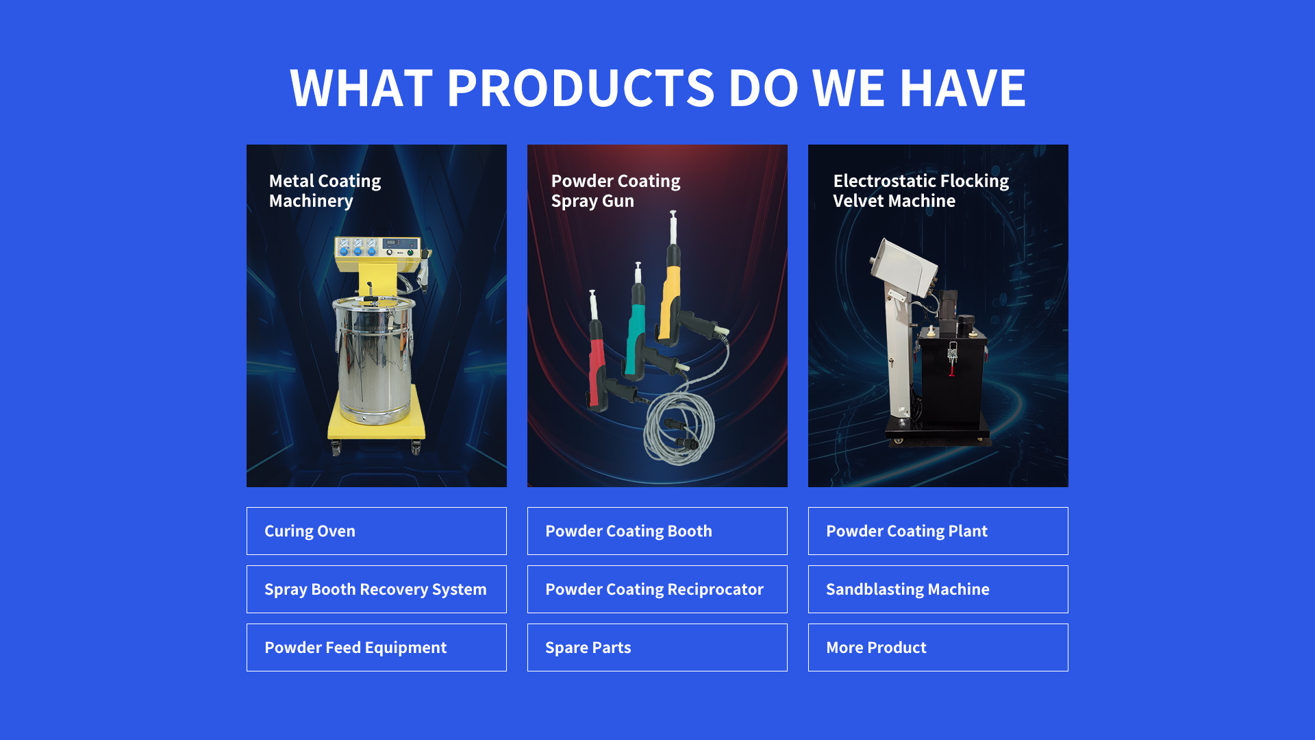 Powder Coating Guns For Sale are handheld or automated devices designed to apply dry powder coatings. Key components include a spray nozzle, powder hopper, electrostatic generator, trigger mechanism, and grounding cable.